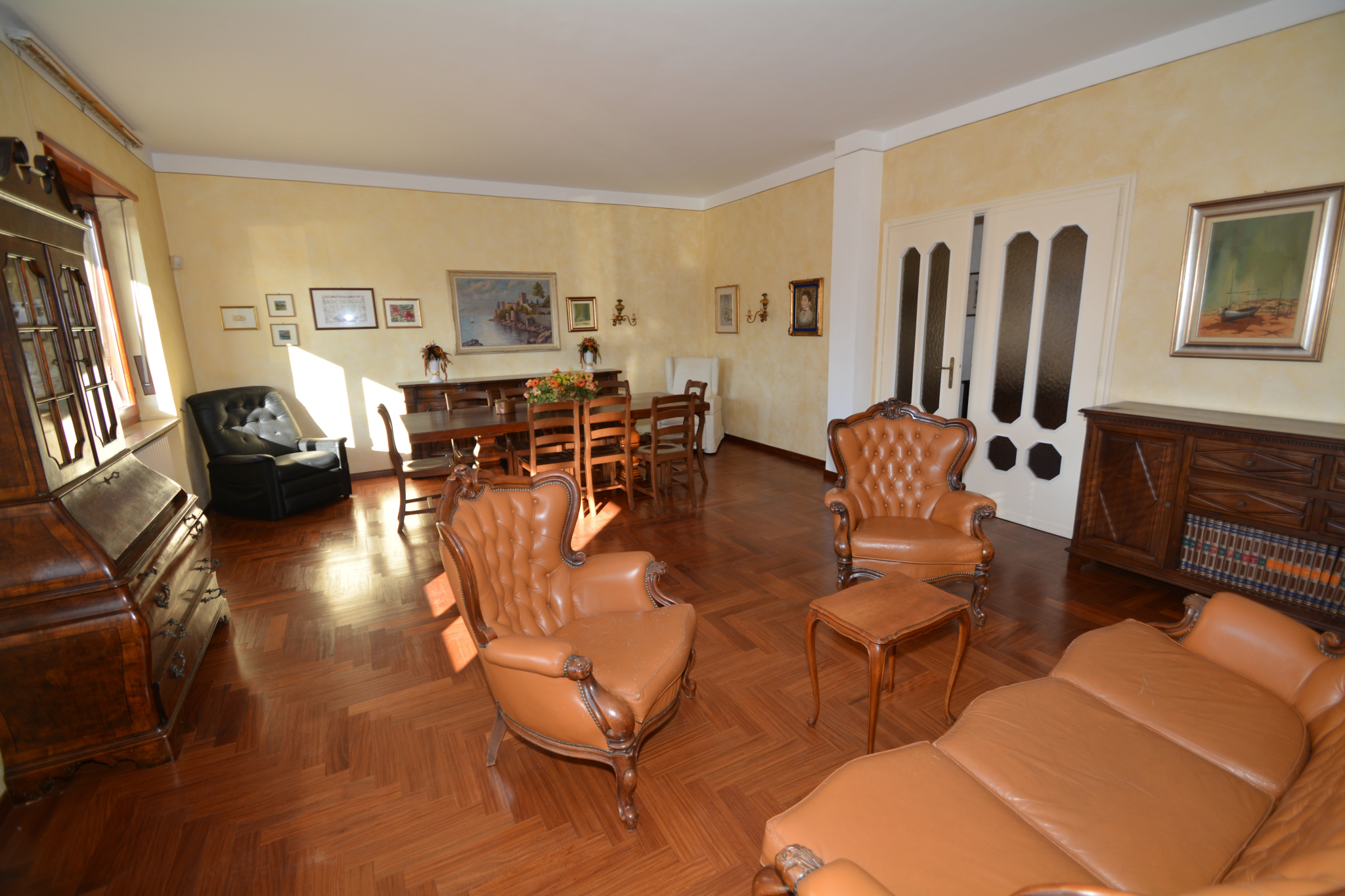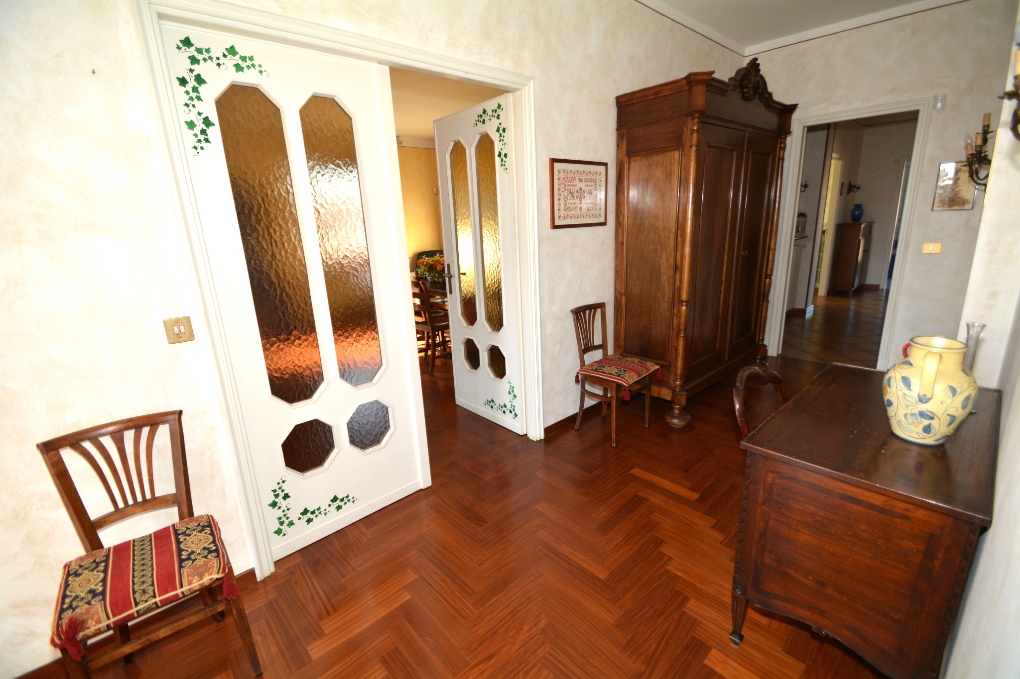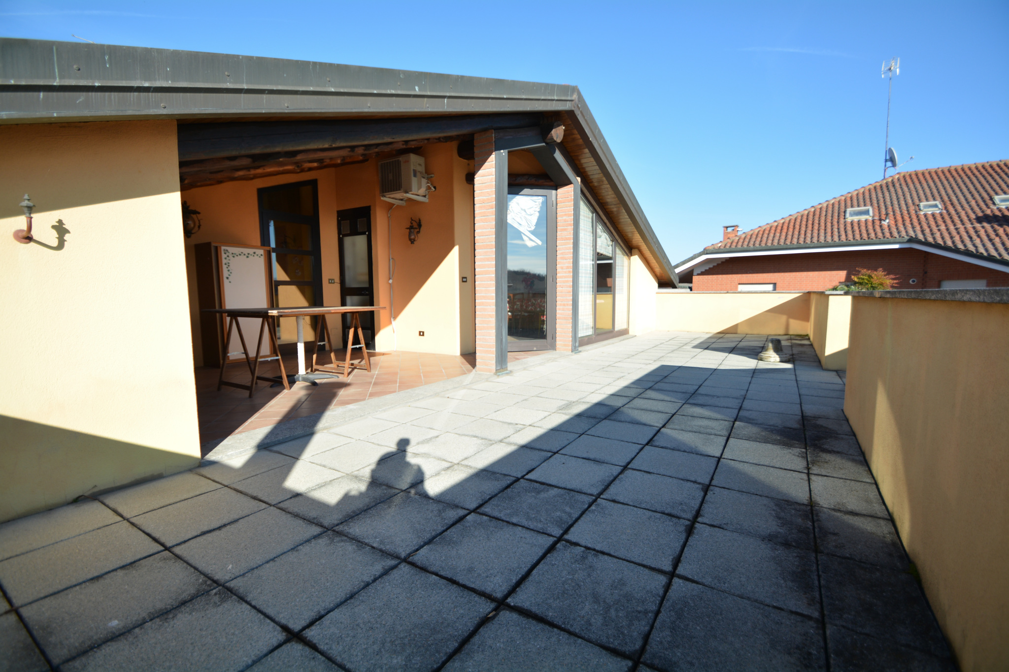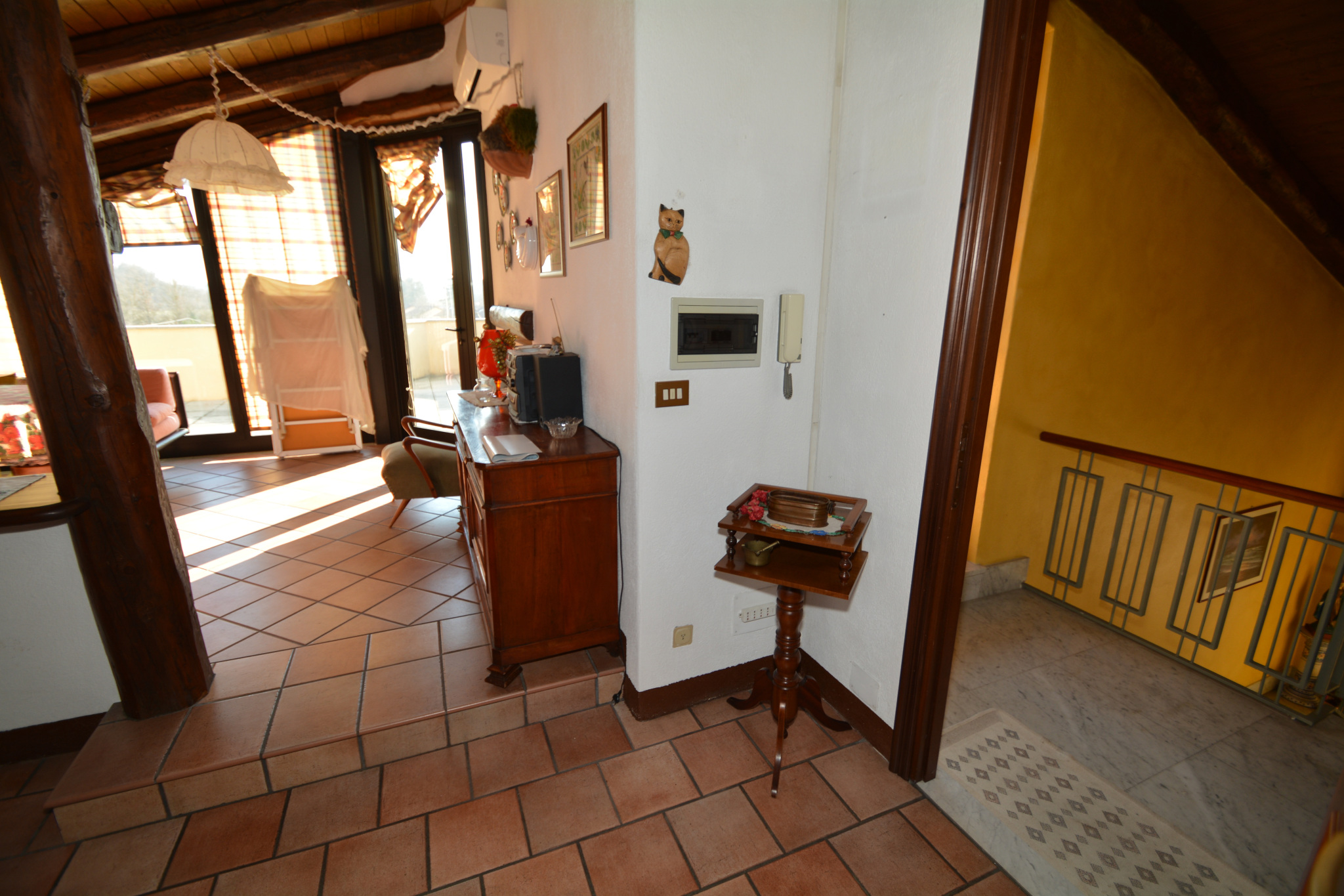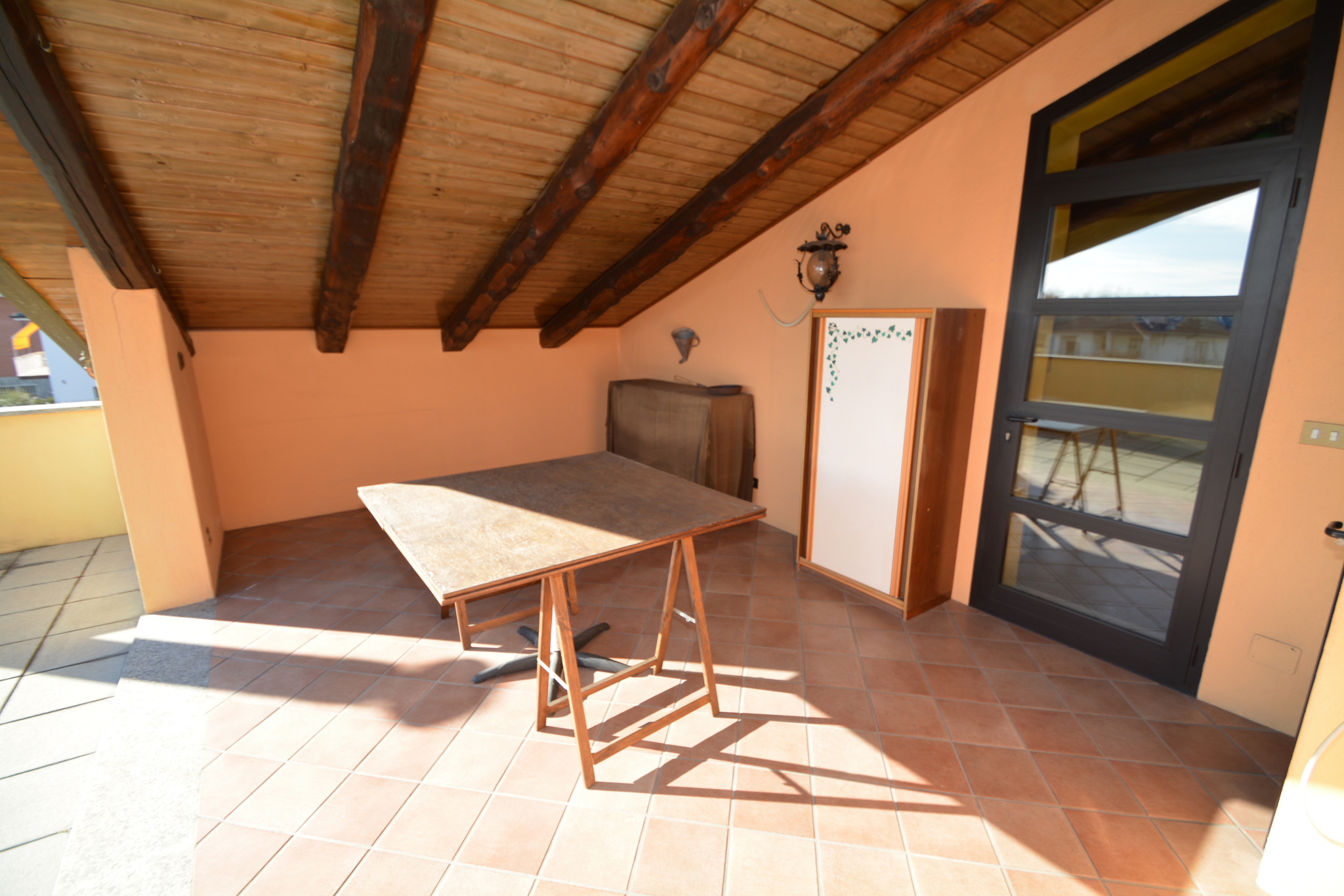 circa 285 m². Ultimo piano (mansardato, ristrutturato negli Anni ’90): ingresso su locale usato come salotto, cucina, disimpegno, lavanderia, due camere da letto, bagno ed un’ampia terrazza parzialmente coperta